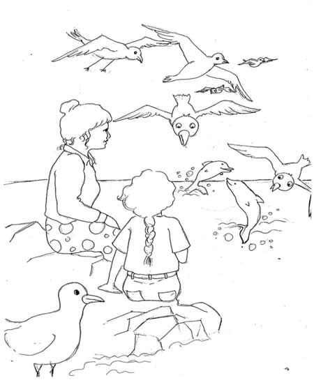 Yunusları gören martılar, viyaklayarak üstlerinden uçuyor, sonra da kayaların üstüne konarak onlarla dost olmak istiyorlardı.